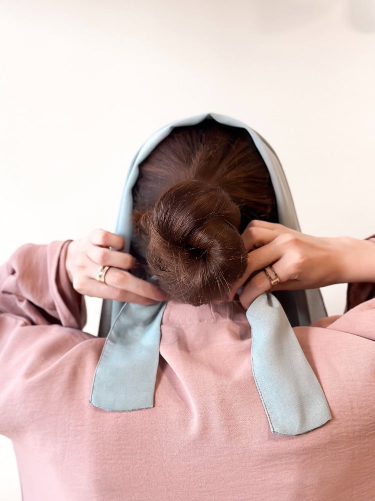 طرحة ربط سادة وثابتة تتميز بتصميم ربطة بمقدمة الراس حيث يسهل لبسها وثابتها