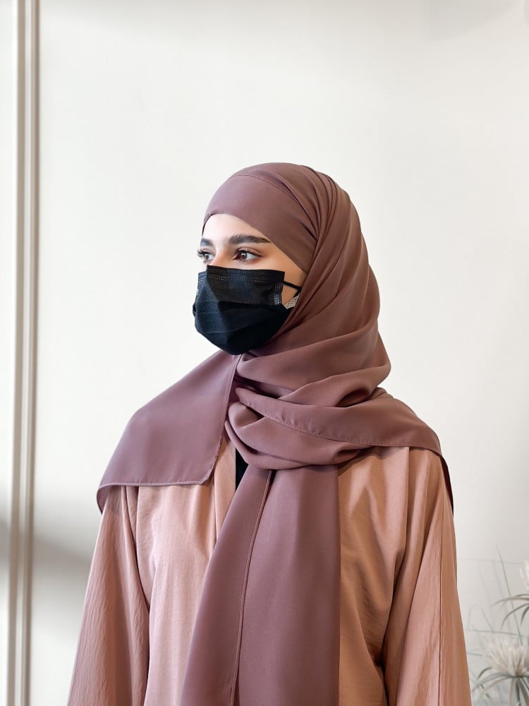 طرحة ربط لحمي سادة وثابتة تتميز بتصميم ربطة بمقدمة الراس حيث يسهل لبسها وثابتها